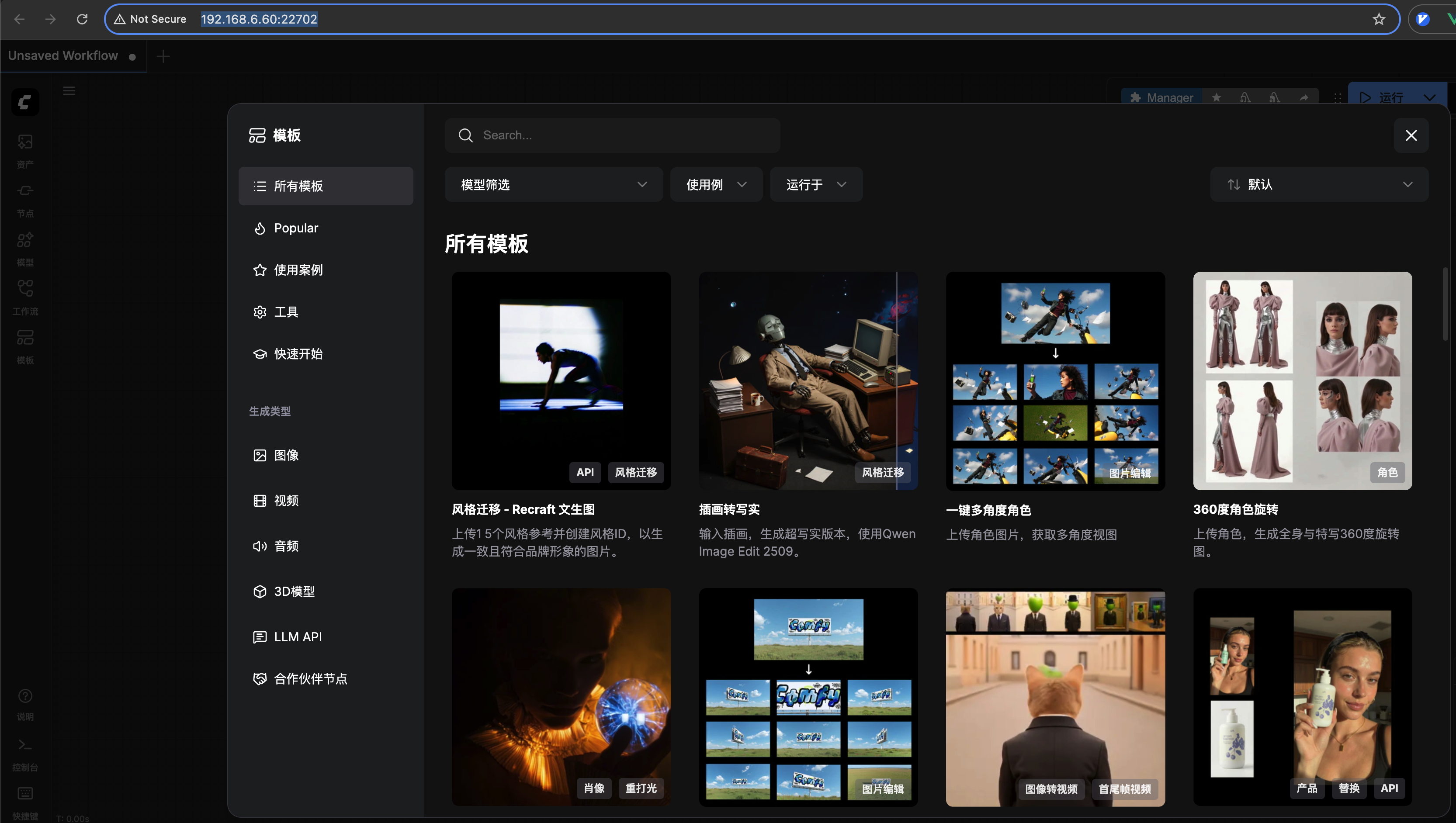 ComfyUI 是图像生成与可视化工作流应用,支持基于节点的工作流编排,适用于图像生成、工作流复用与可视化调试。