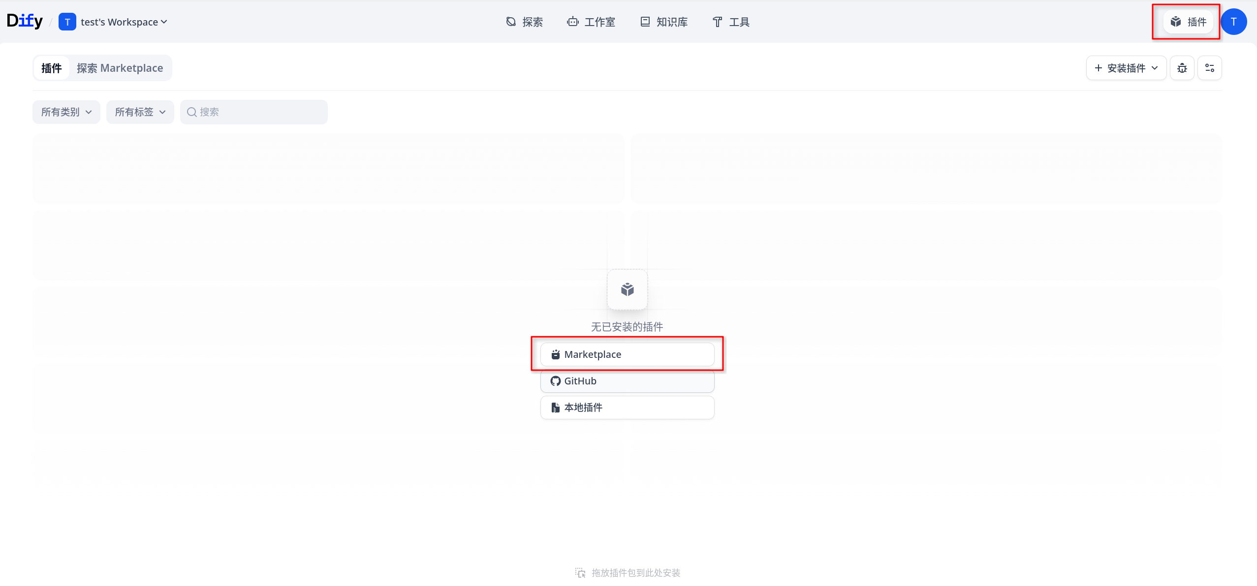 - OpenAI / OpenAI 兼容服务:通常也需要先在 Dify 的 插件 → Marketplace 安装