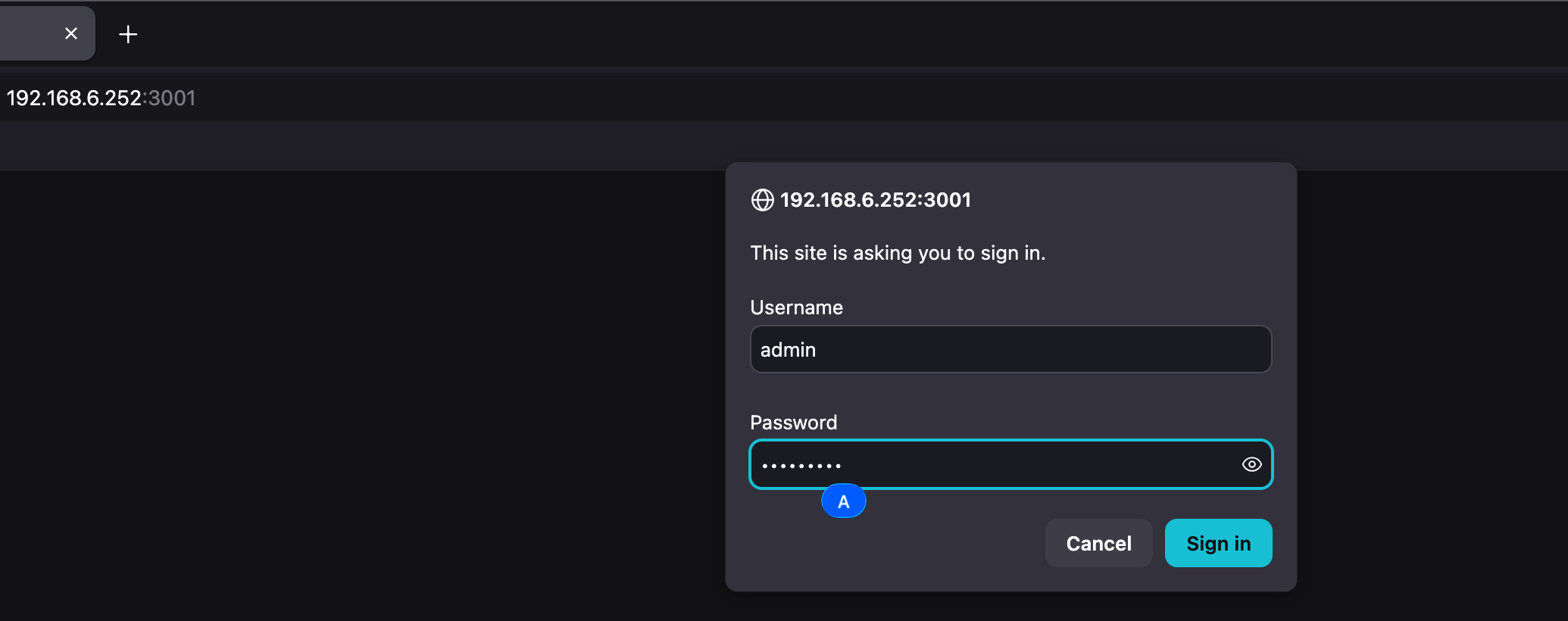 其中的用户名和密码,是 http auth 的认证信息,用浏览器打开时,会提示输入: