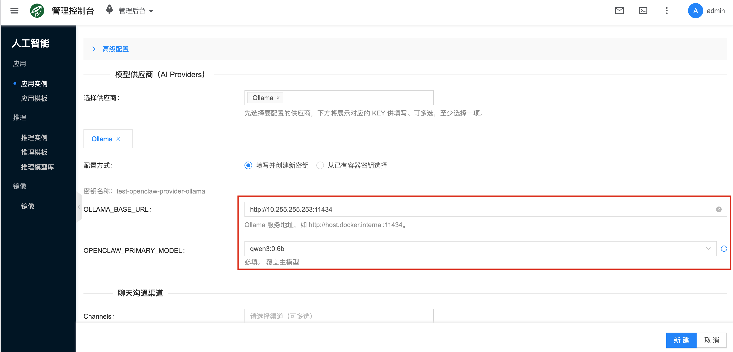 如果你准备让 OpenClaw 使用平台里的 Ollama 实例,建议 先阅读下文的 Ollama 推理实例 小节,再回到实例页面完成配置。