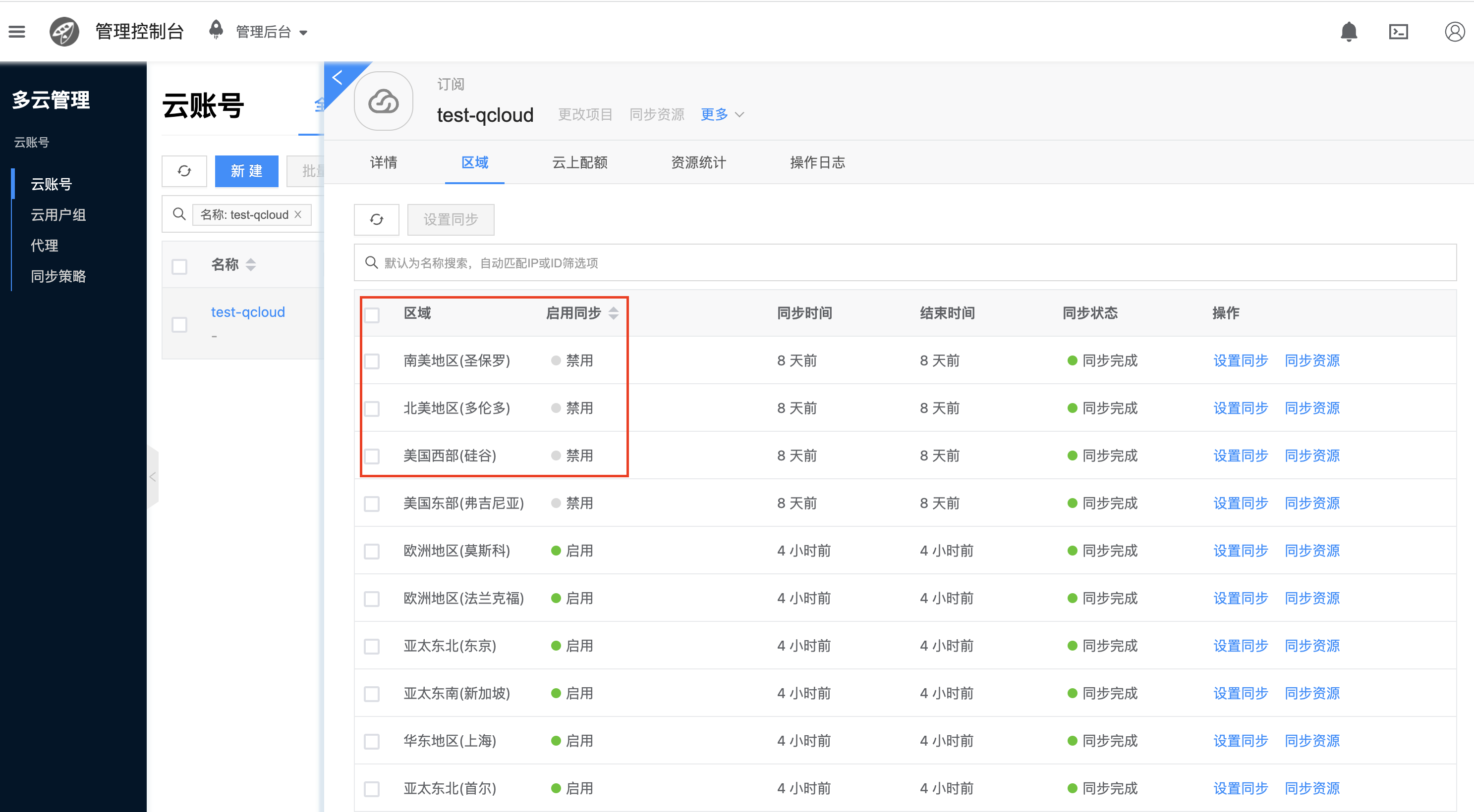检查资源所在的云订阅区域是否被禁用, 同时查看同步时间,若长时间未同步,可以先手动同步下