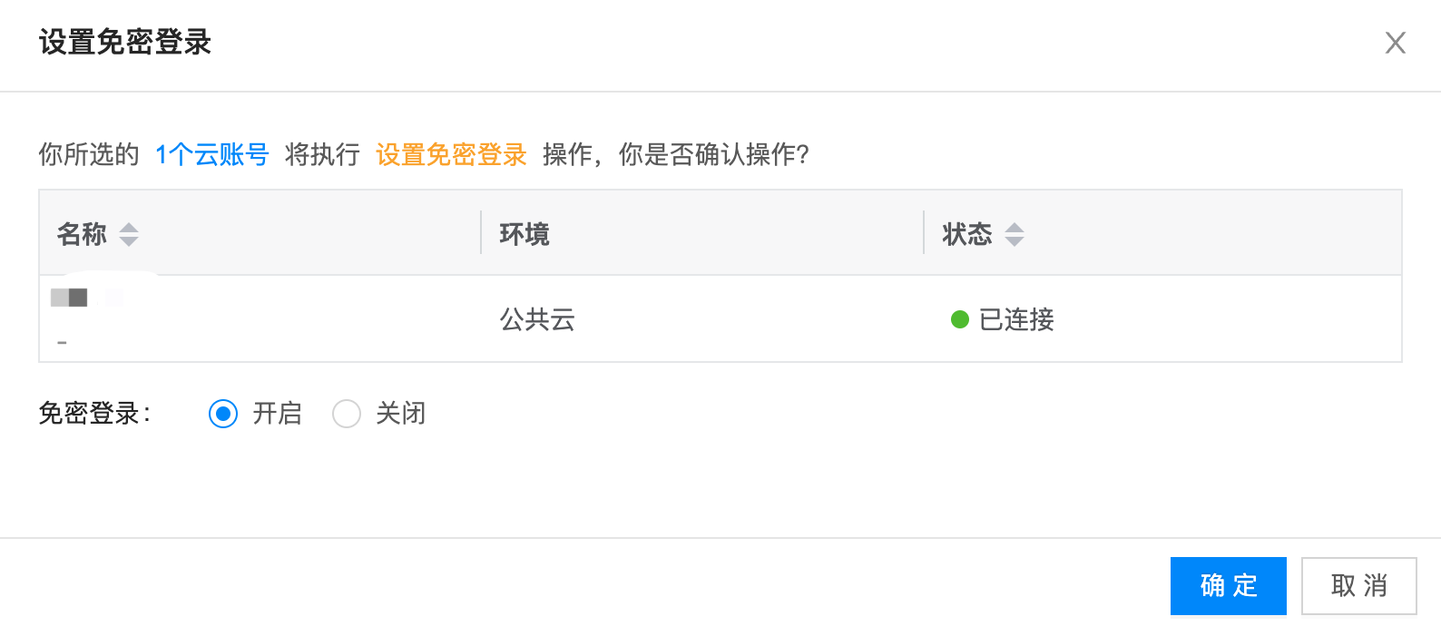 用户手册免密登录最佳实践本页总览最佳实践 启用免密认证 找到需要开启免密登录的云账号 查看云账号右侧, 单击 更多 > 属性设置 > 设置免密登录 如下图所示 单击 开启 按钮, 点击 确定 开启免密登录 如下图所示 提示若关闭免密登录,云账号不会删除底下免密登录资源,仅会禁止用户免密登录 身份提供商 开启之后云平台会在此云账号底下各个云订阅创建身份提供商 选取此云账号底下任意云订阅查看身份提供商是否正常创建,如下图所示