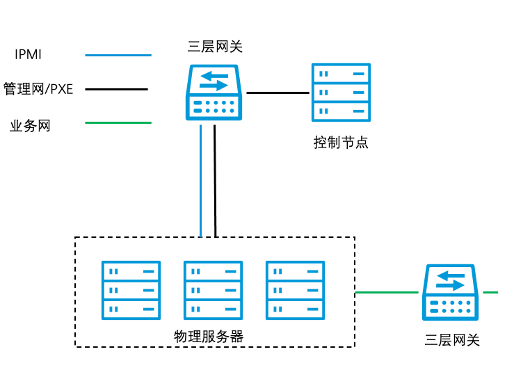 - IPMI网络用于远程访问BMC(Baseboard Management Controller),通过IPMI网络可以远程控制物理服务器的开关机等。