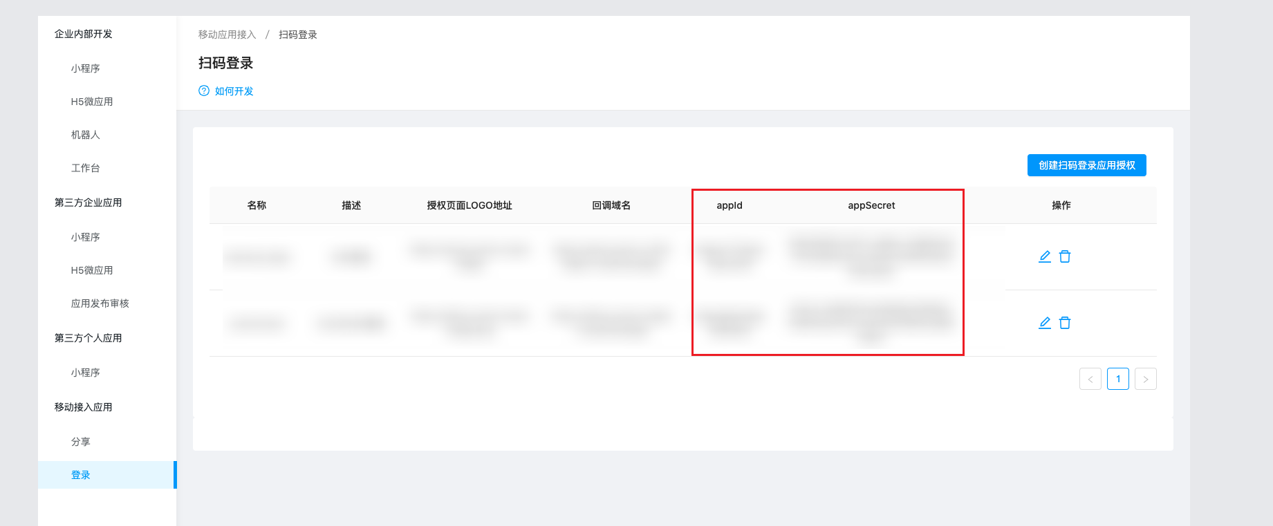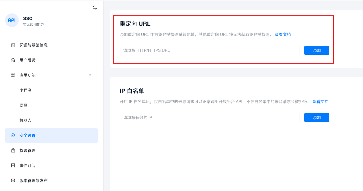 列表上方将显示SAML协议以及OIDC、OAuth2协议需要平台提供的EntityID和Redirect_url(回调地址),且支持复制。