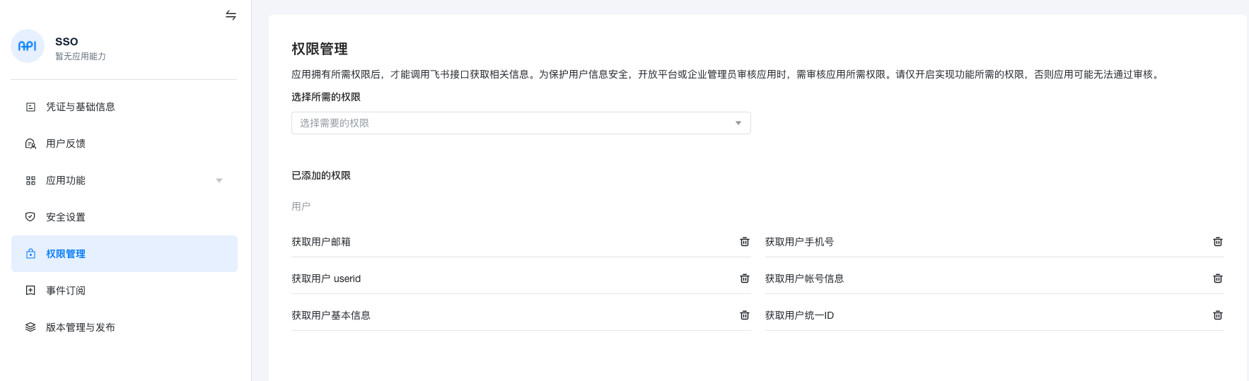 | oauth2 | feishu | 飞书企业认证 | 单个域 | 每次用户登录时导入 |