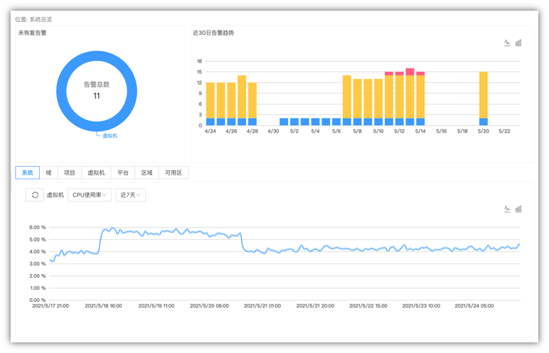 3.5 增加监控总览,可以查看告警情况及平台各纬度使用情况