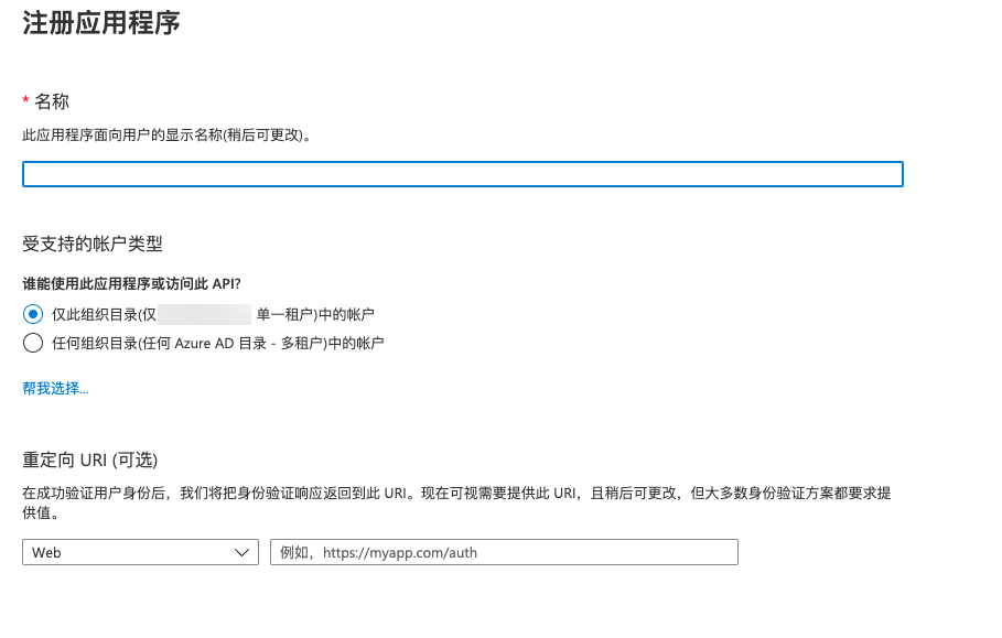 3. Select the supported account type according to requirements, configure the redirect URI, set it to "web" and the platform callback address to "https://<domain>/api/v1/auth/ssologin".