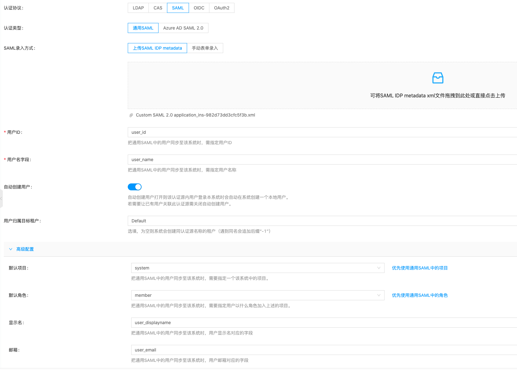 • When the authentication type is generic SAML, for parameter acquisition methods, please refer to Generic SAML Parameter Acquisition Methods