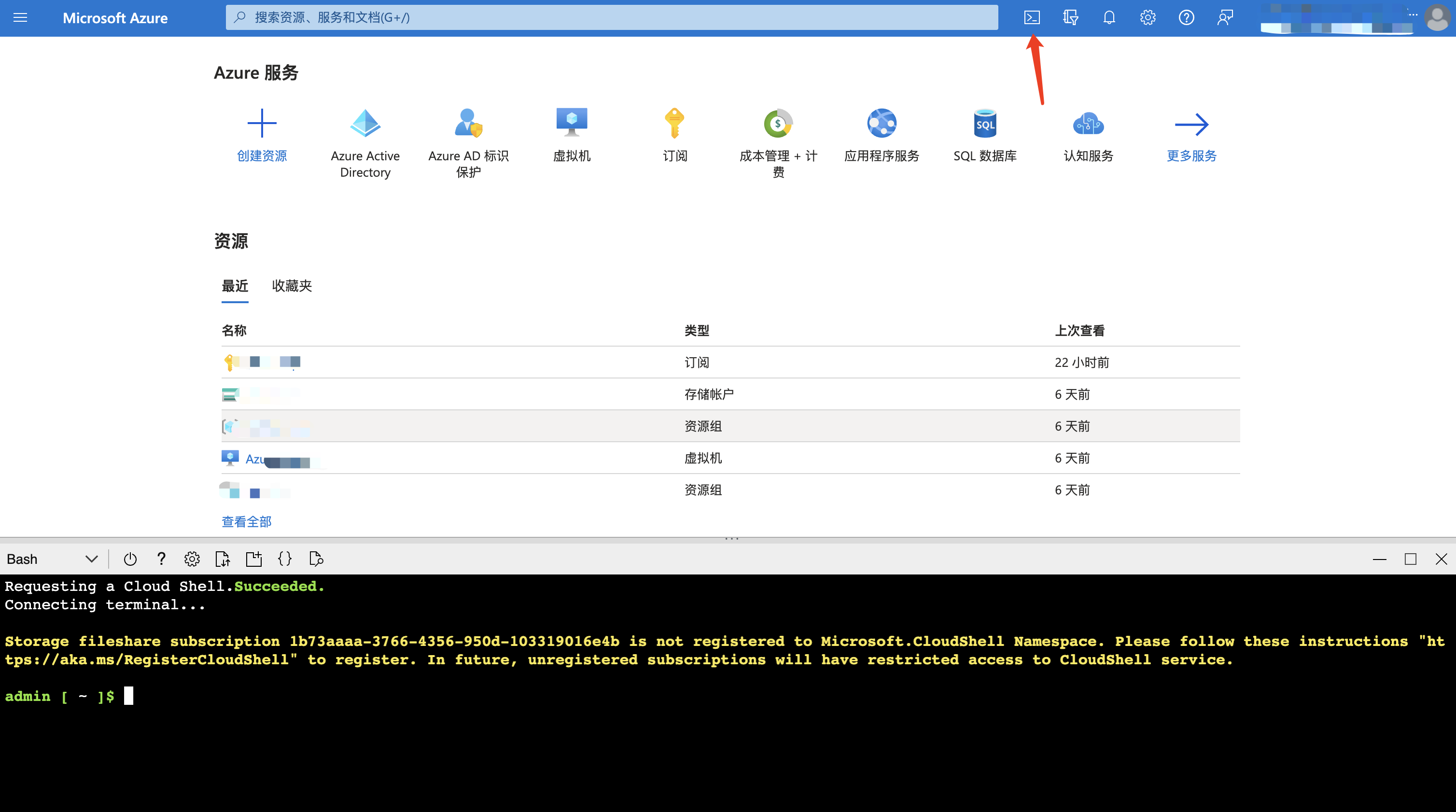 Log in to Azure Console, Enable CloudShell