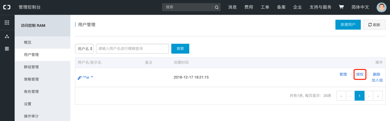 主账号获取AccessKey