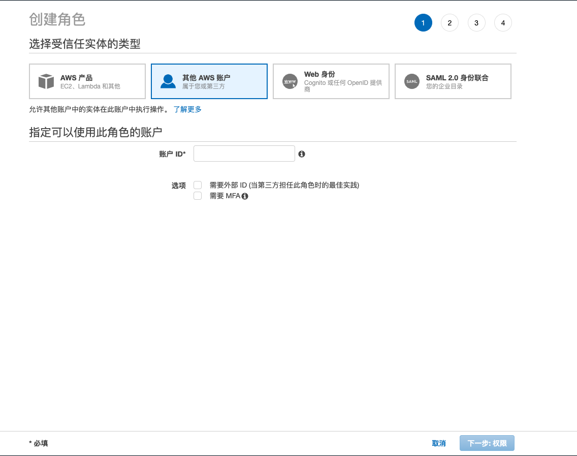- 云账号类型:包括主账号和关联账号,使用关联账号之前请确保主账号已导入平台,并在使用关联账号时选择该主账号。