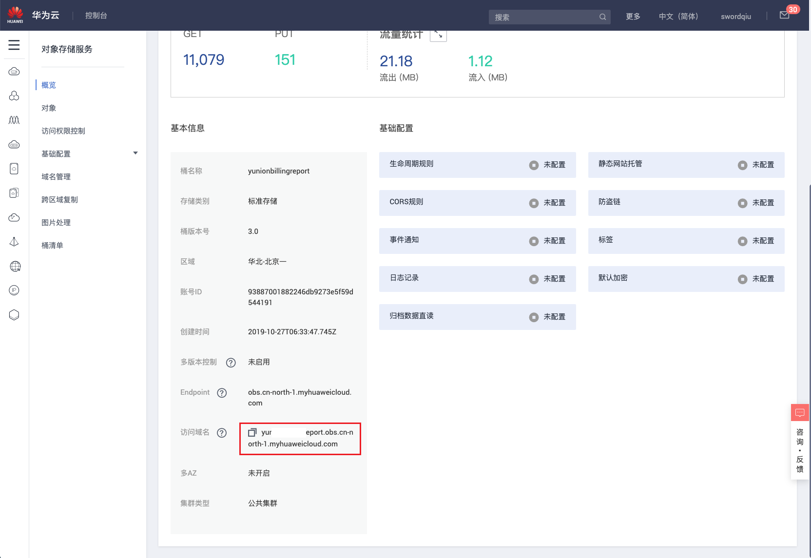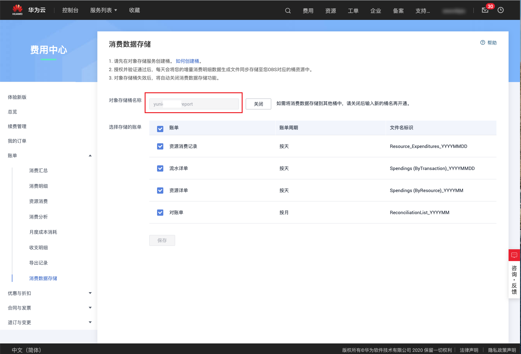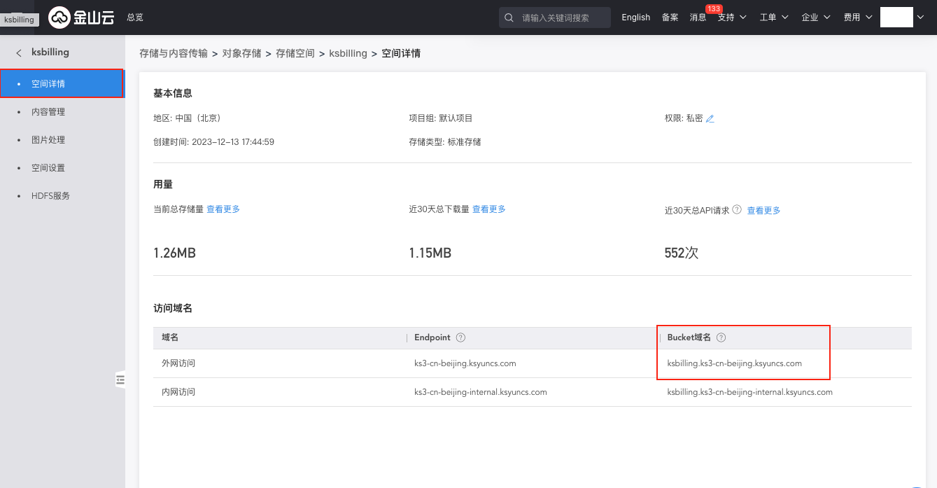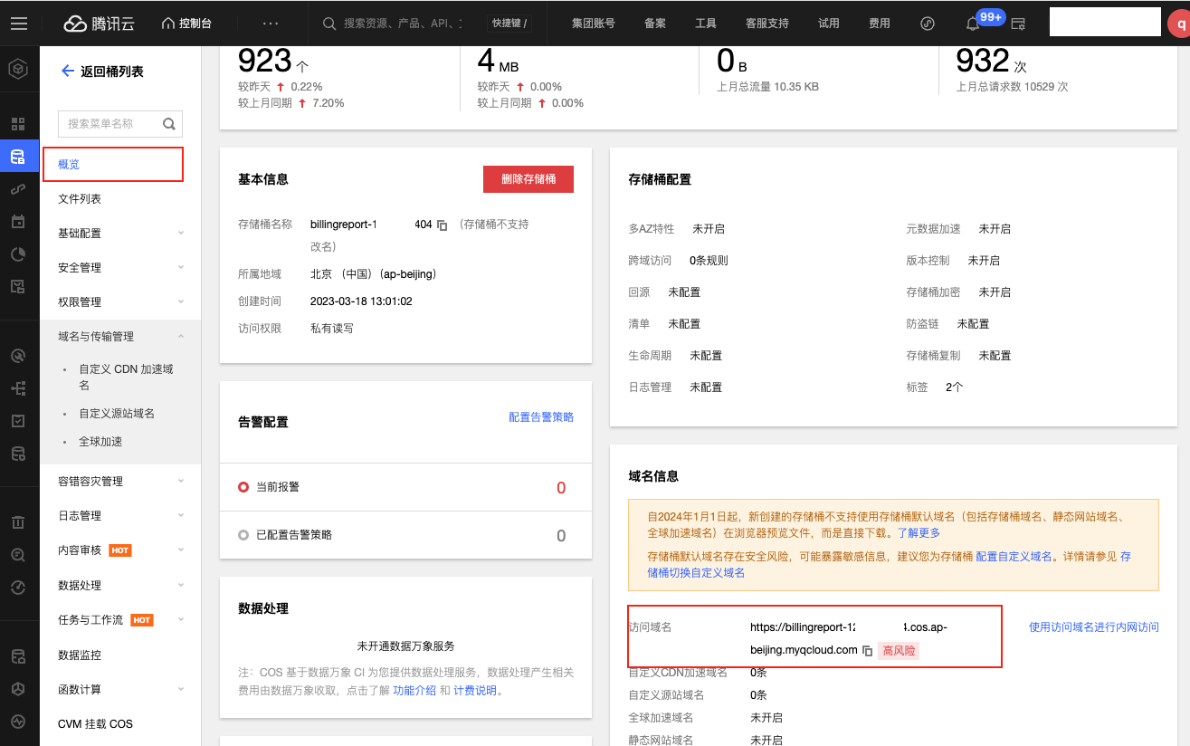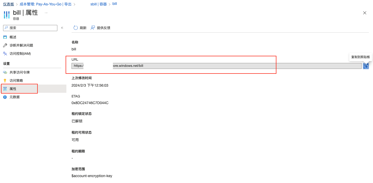 - 存储桶URL:账单文件所在存储桶的URL。具体请参考如何获取账单存储桶URL?。
