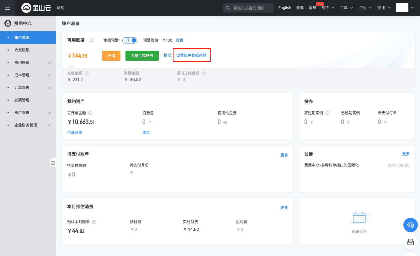 - 立即采集账单:平台默认每天凌晨4点自动采集账单。开启该项后,配置完账单文件访问信息后,将会立即采集账单。