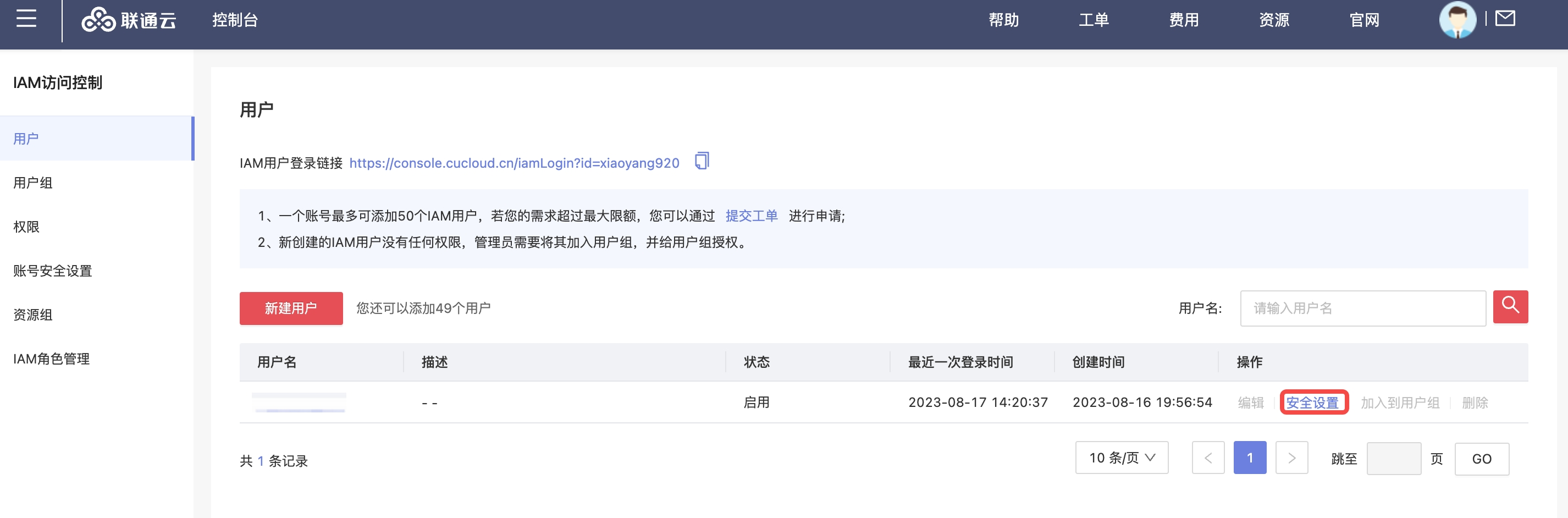 - 在云账号页面单击列表上方 "新建" 按钮,进入新建云账号页面。