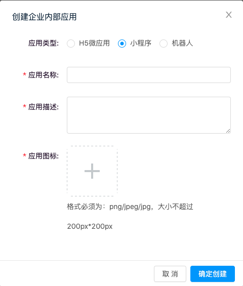 Create an application in the "Application Development" page under Enterprise Internal Applications - Mini Program page.