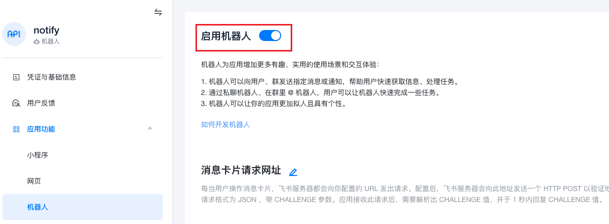 - When type is "Feishu", configure the following parameters:
