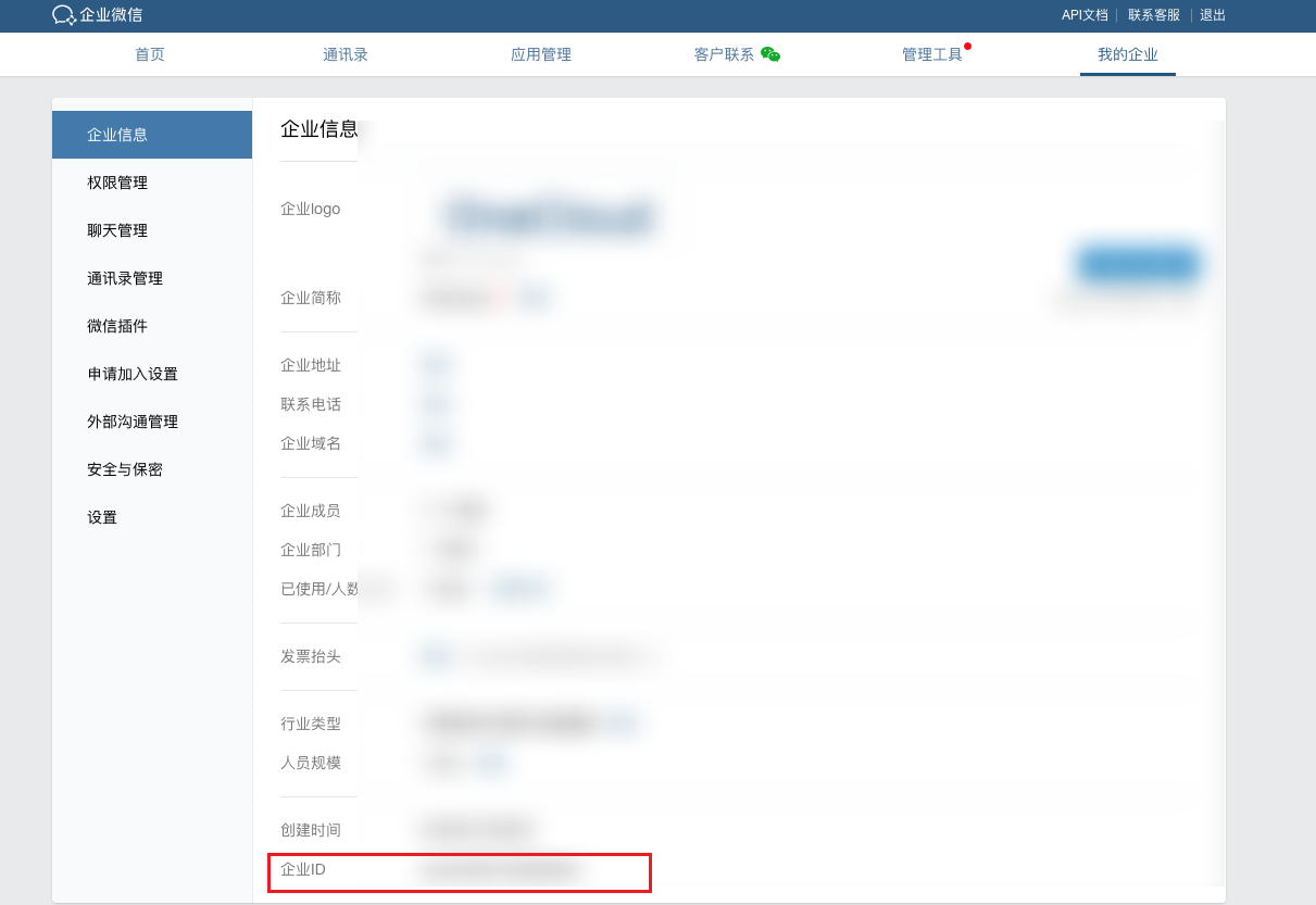 - Enterprise ID: Used to identify the enterprise. For how to obtain, please refer to Enterprise WeChat Platform Parameter Steps.