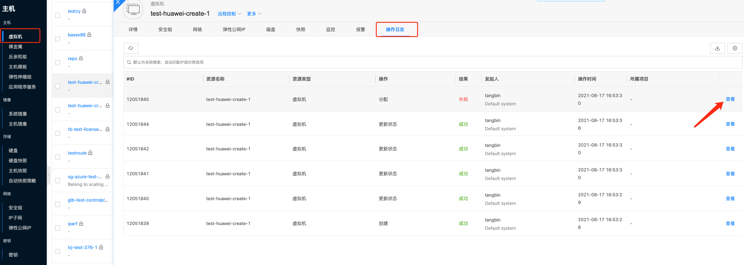 - Click on the log with failed result as shown in the figure