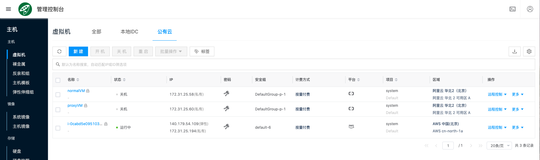 Public Cloud Virtual Machine List