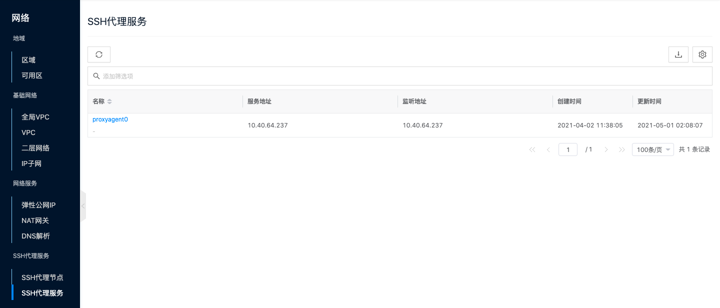 - In the SSH proxy service list, click the SSH proxy service name item to enter the SSH proxy service details page.