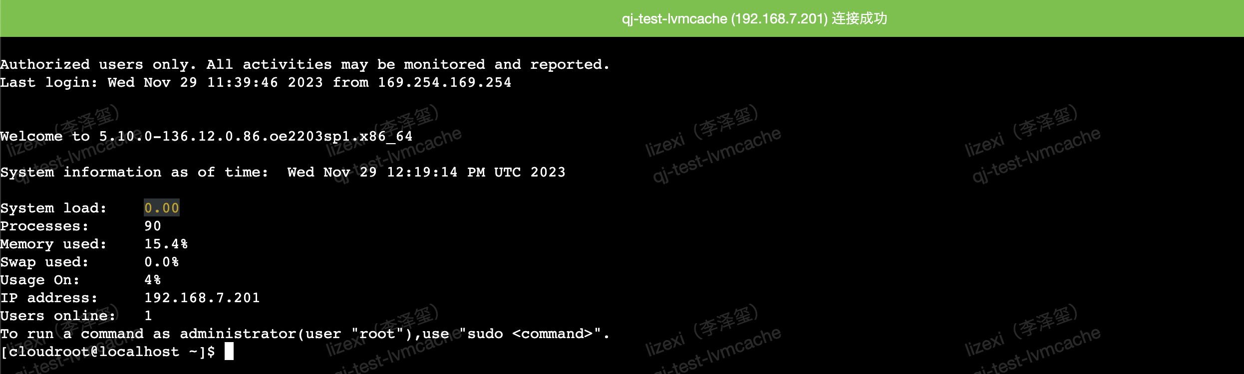 Because the platform automatically injects public keys into virtual machines, you can directly log in to Linux virtual machines without password. The command is as follows.