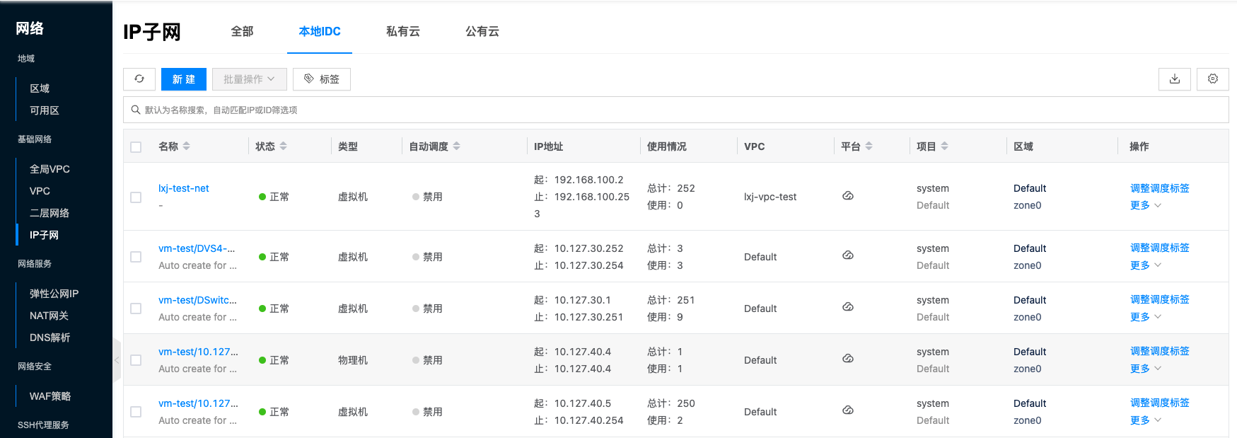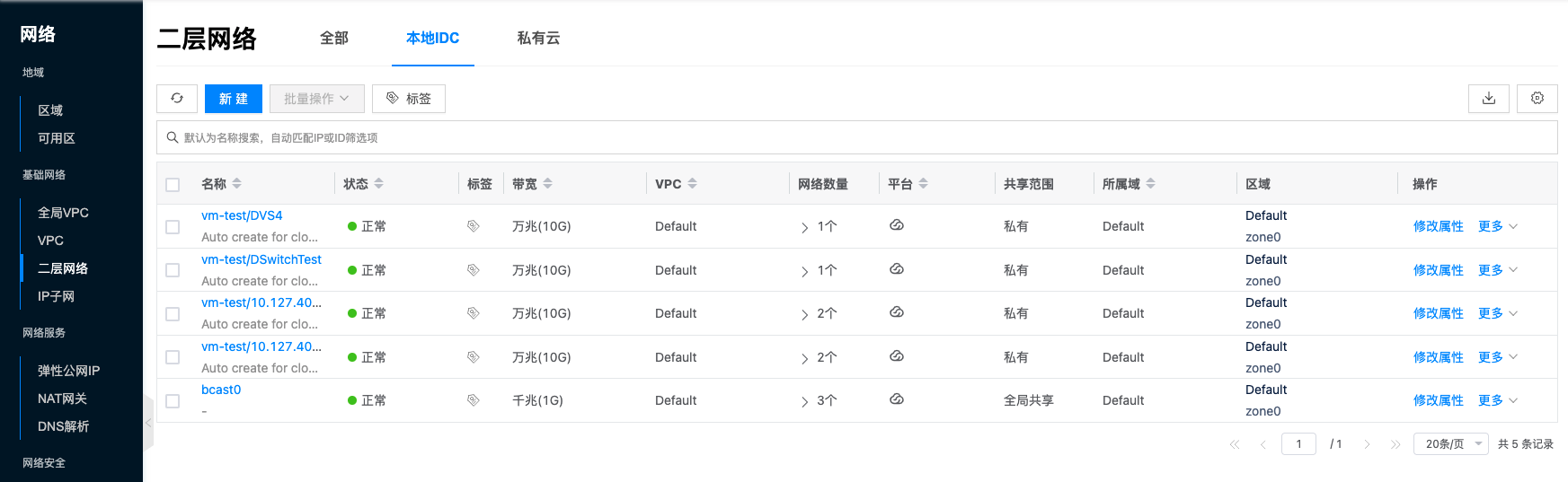 - Layer 2 Network List (Classic Network)