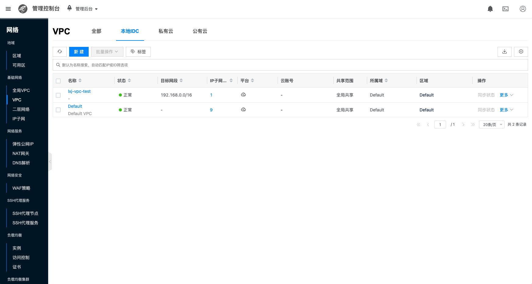 - VPC List